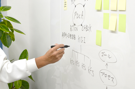 大型ホワイトボードで、フレキシブルな打ち合わせの実施が可能です。